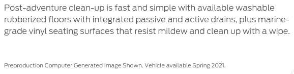 I must say I'm highly disappointed. The washout interior was one key feature I wanted. And was the sole reason I was going with the Black Diamond. Guess Ford just made my decision to go with the Big Bend.