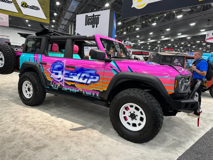 So, the question is, does the Bronco brand only equal “rugged” in your mind, or can share space with a floral-wrapped Bronco that may never leave the pavement –– or one that does?