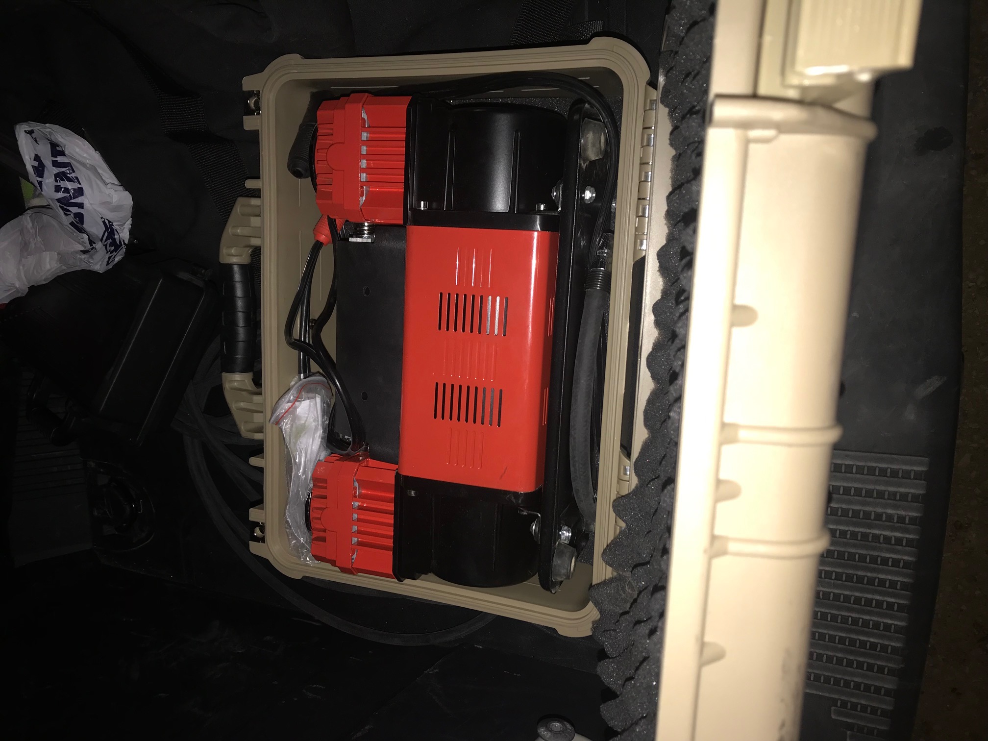 However, This winter/spring I am going to have to rework this whole thing to reinforce the tailgate and swap out the bumper. My tires weight much more than the factory goodyears and the stock hinges are starting to groan, so I think its time to fix that up before they fail. I don't particularly like the AGS bracket with the support so this whole set up is probably going to have to be moved. I have the ARB underhood mount sitting in my garage, but I haven't definitely decided I want to use it yet. I like the DV8 rear storage cubby and may just run the air hose out the tailgate.