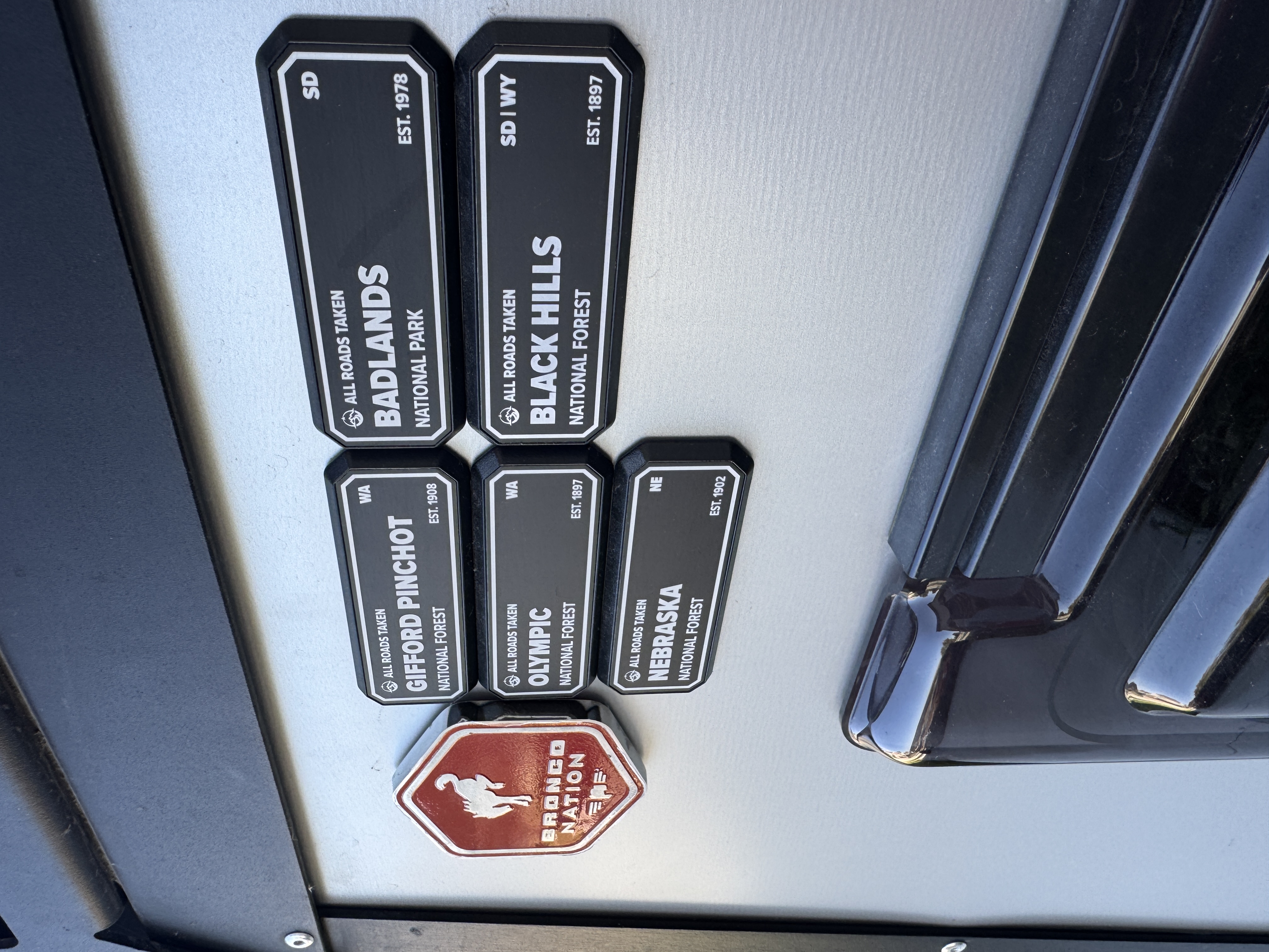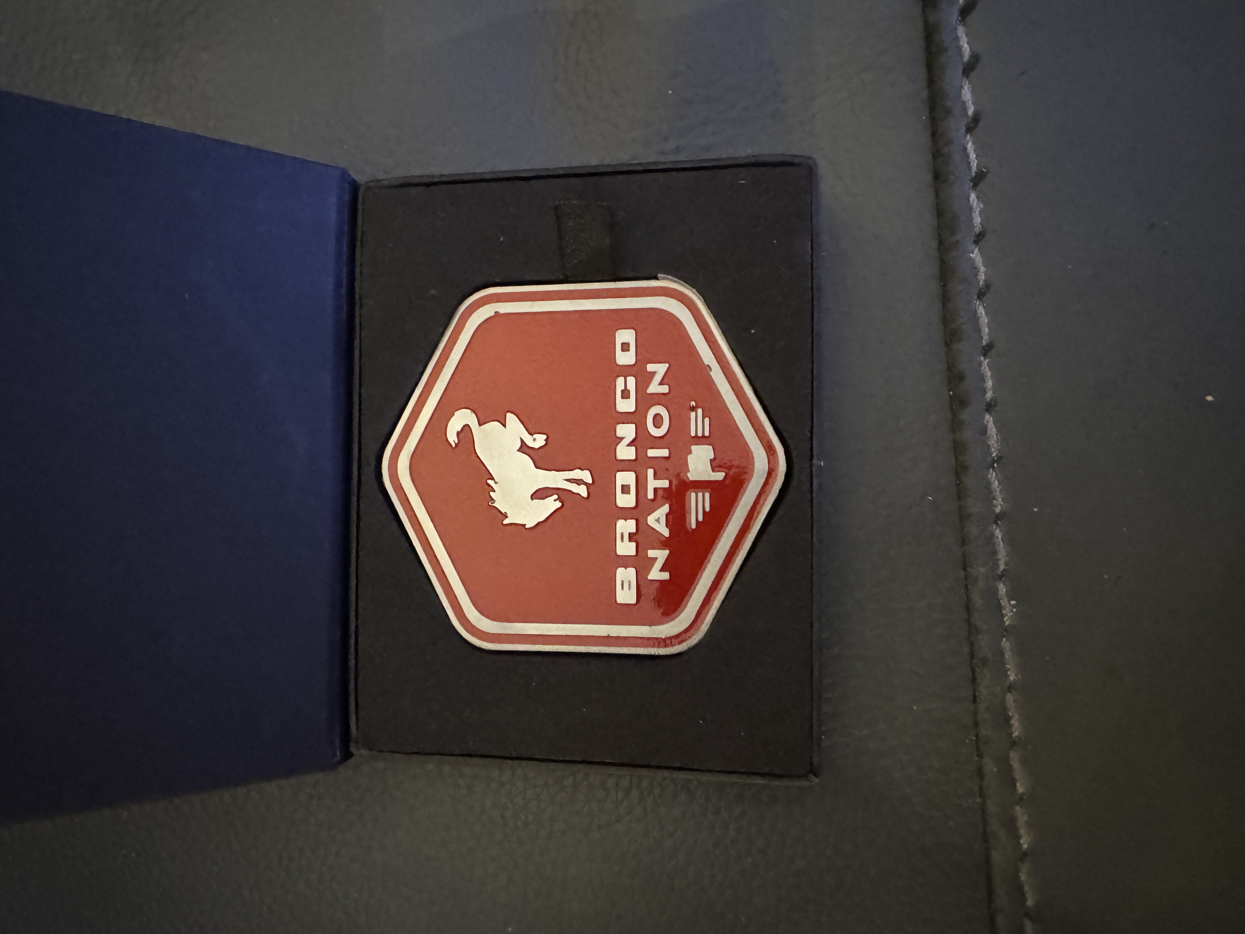 Today I received and replaced the Bronco Nation Grille Badge that was on my TigerMoth with one that @Deano Bronc repaired and painted for me..