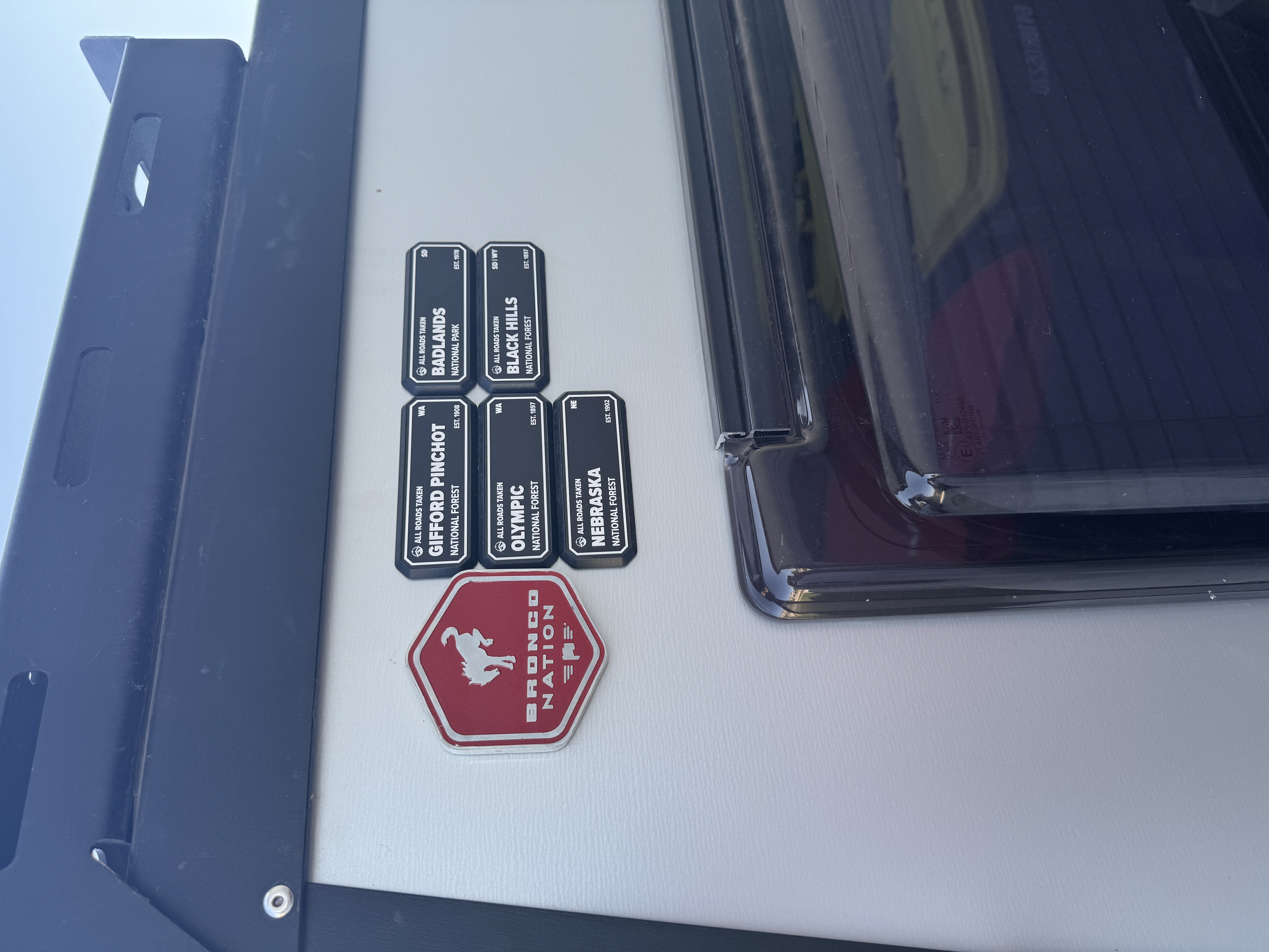 A few years ago, @Sven had gifted me this badge and I had it displayed on the front of my Bronco. It became very weathered and was in very bad shape. @Deano Bronc graciously offered to repair and repaint the badge in Hot Pepper Red for me..