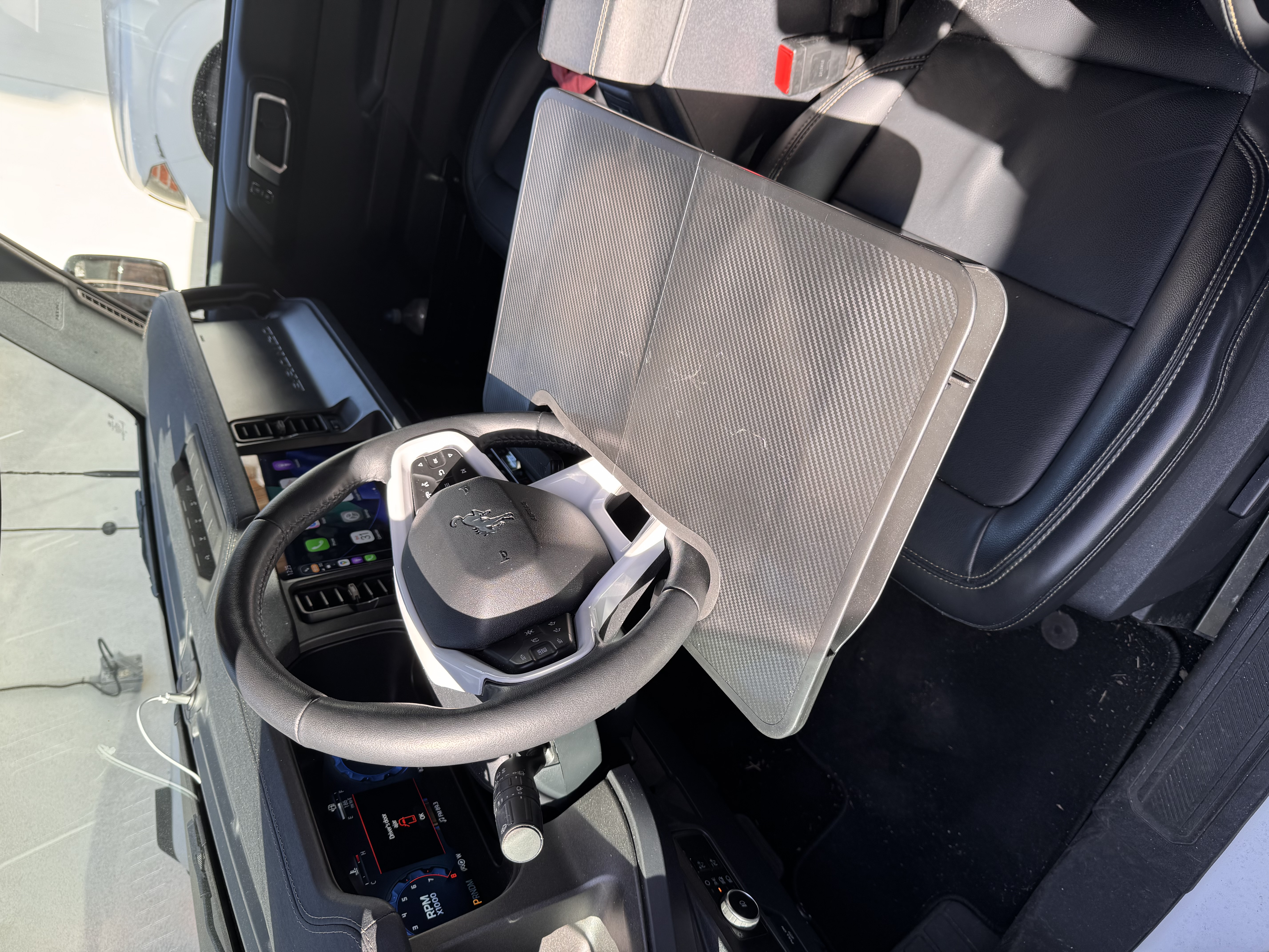 At fist thought I was like this would be a great place to eat my lunch on the go. But once I did any steering it would be all over. But a snazzy spot to park the laptop for forescan updates, that would have been nice to have.