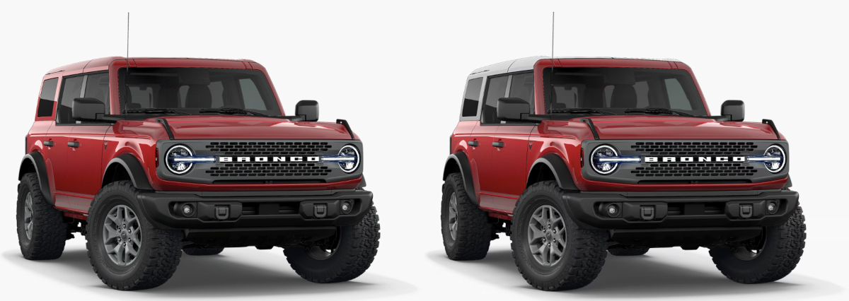 The new model year updates, announced in October, included the news that the 4-door Bronco Badlands would receive the option to mix and match painted hard tops with the eight different body colors available.