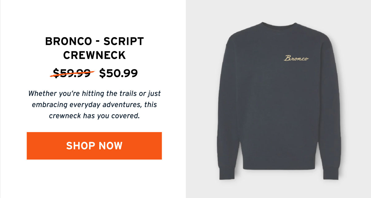 From name-brand parts for your Ford Bronco to gear that keeps you looking good on or off the trails, you can now treat yourself with SITEWIDE SAVINGS of 15% on merch throughout the entire Bronco Nation Gear Store.*