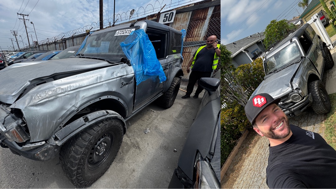 The 4-door Bronco was too long for that category, so RJ went hunting for a 2-door, which is what he’s used to driving off-road. He found one, a wrecked 2023 Black Diamond and began the transformation.